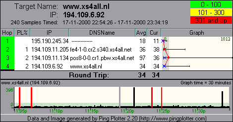 Timeout Speed 9999ms / Time interval between hop traces 25ms / Packetsize 32 bytes / Trace interval 10 seconds